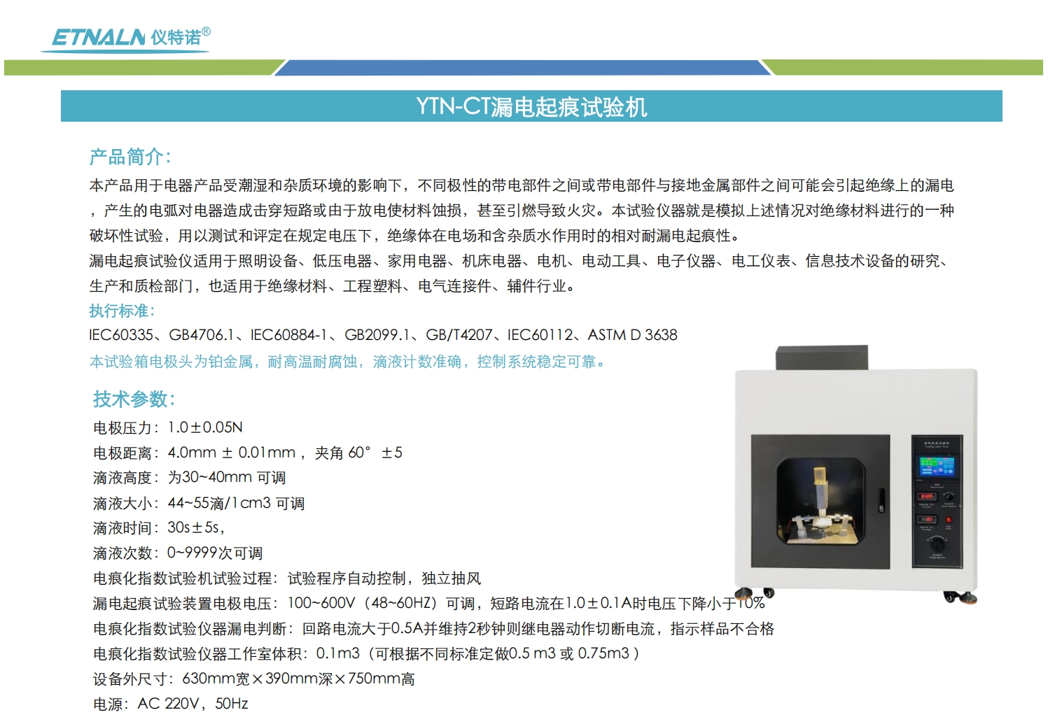 該設(shè)備用于評(píng)估材料在潮濕環(huán)境下的耐電弧性能,測(cè)定CTI和PTI指數(shù)。電極需選用鉑金材質(zhì),銅電極測(cè)試結(jié)果不被認(rèn)可,需在報(bào)告中明確標(biāo)注。