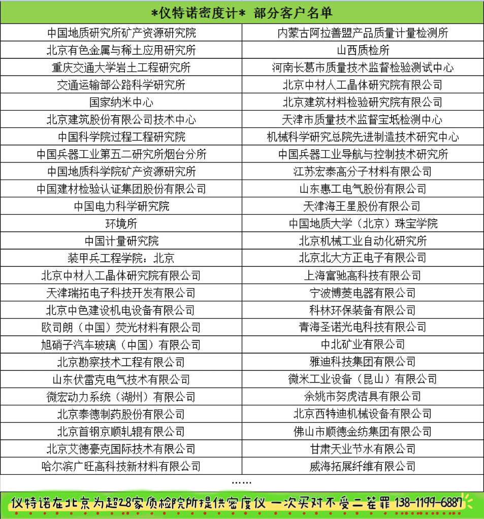 源頭廠家,實(shí)力在我。儀特諾在北京為超28家質(zhì)檢院所、985/211高校提供密度測試儀器,一輩子的事業(yè),持續(xù)做好產(chǎn)品質(zhì)量與服務(wù),我們一直在路上...歡迎隨時(shí)聯(lián)系,把你的需求告訴儀特諾,為你提供專業(yè)的密度測量解決方案。