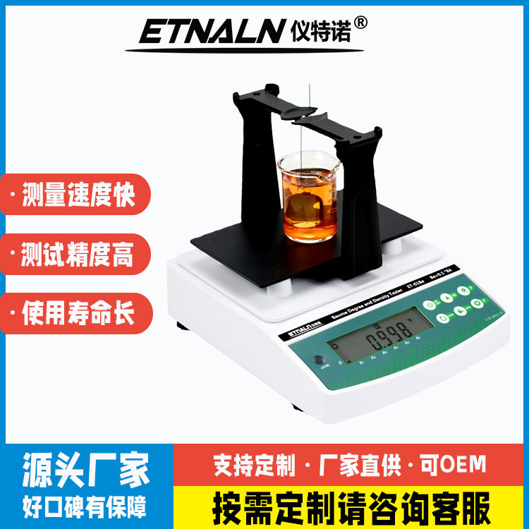 醋酸濃度與密度測試儀ET-01AA、ET-02AA系列產品是根據阿基米德原理,采用德國進口高精度測量傳感器先測得醋酸密度值SG,然后由密度值自動計算出醋酸濃度%、波美度Be;測量精準、簡便快速、可靠性高等特點;廣泛應用于醋酸上游生產商、下游醋酸采購商、制藥、染料、農藥、橡膠、塑料原料、研究實驗單位…等已成為各大化工產品制造廠的必備理化檢測儀器!